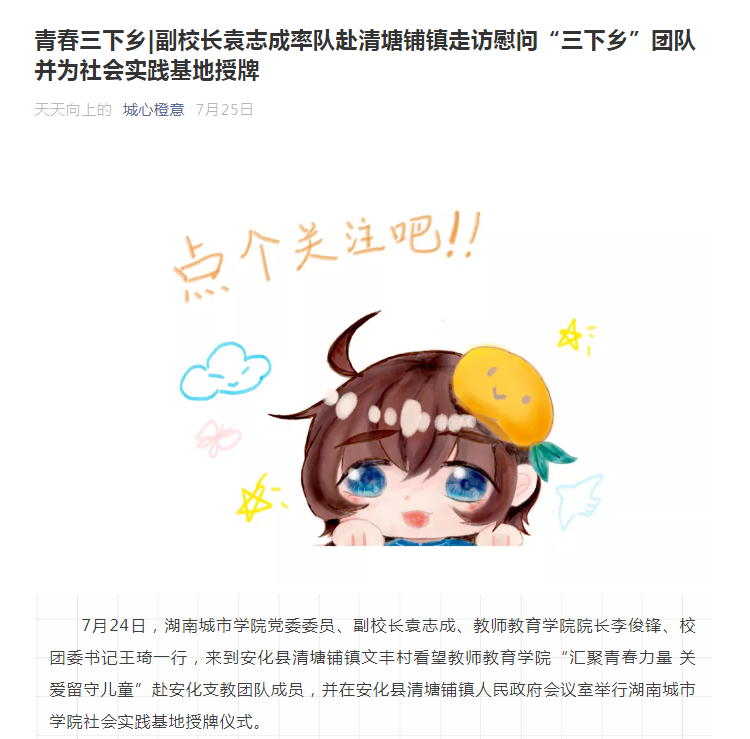 (转城心橙意)青春三下乡丨副董事长袁志成率队赴清塘铺镇走访慰问“三下乡”团队并为社会实践基地授牌