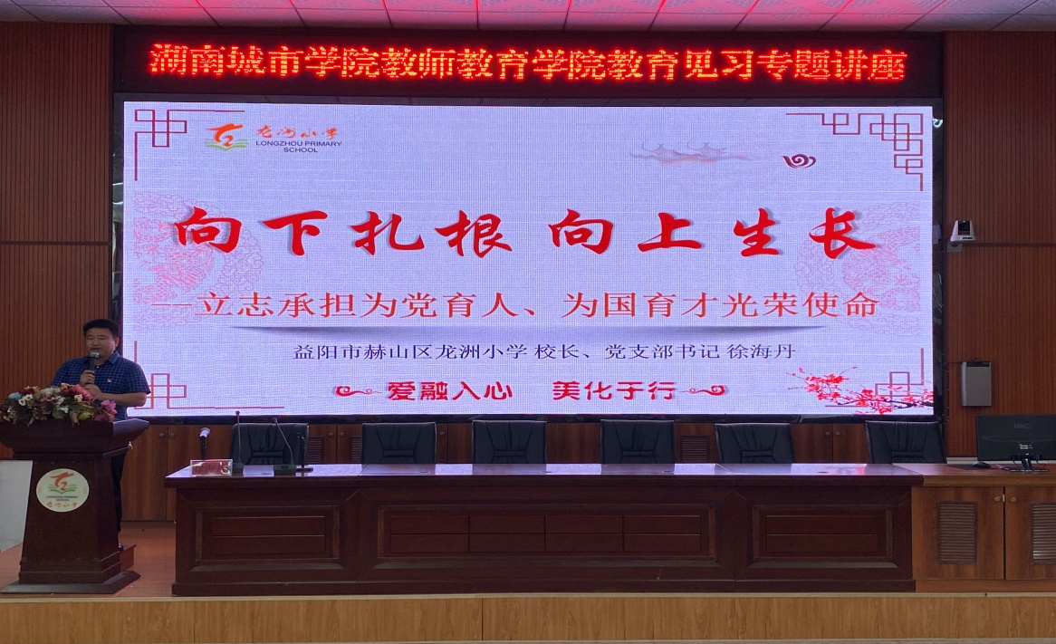 最后,龙洲小学董事长徐海丹在报告厅为师范生做讲座,徐董事长分析了当今国家和社会的优秀教团队源不足,希望在座的学子立志承担为党育人、为国育才的光荣使命,深入了解教育的意义,珍惜韶华,活在当下,勇担时代重任,向未来的老师们寄托殷切期望。他向我们介绍了龙洲小学的创办历史、发展历程、团队队伍,解说了“以爱育爱,以美求美”的办学理念和“培养家国情怀、国际视野的现代公民”的育人目标。“做教育要脚踏实地,仰望星空”徐董事长引用温家宝总理的话,他强调,既要埋头拉车,又要抬头看路。讲座现场气氛轻松活跃,在热烈的掌声中圆满落下帷幕。