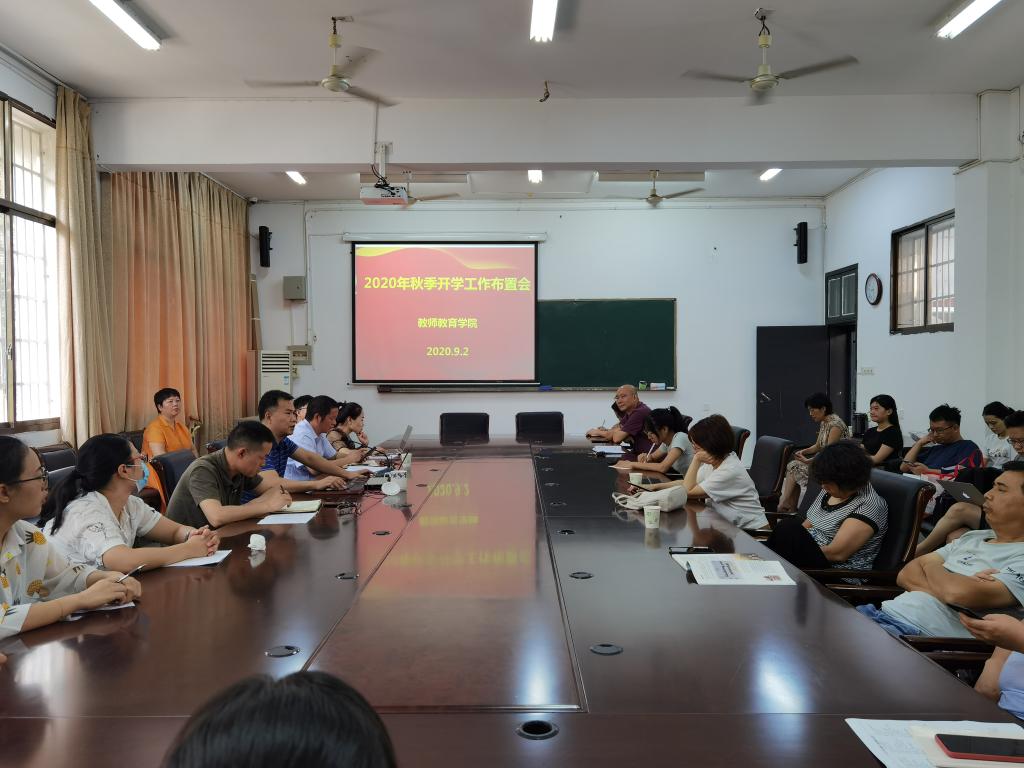 2020年9月2日上午,伟德国际1946在三教学楼114会议室召开了2020年秋季开学工作布置会。会议由党总支书记舒谷生主持,院领导及全体教职工、外聘专职老师、2019级班主任参加了会议。