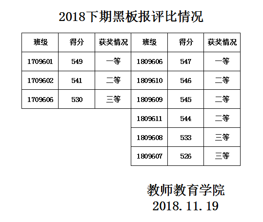 2018-2019学年中职师范班级黑板报评比结果