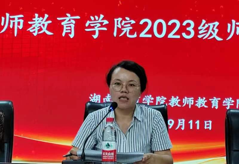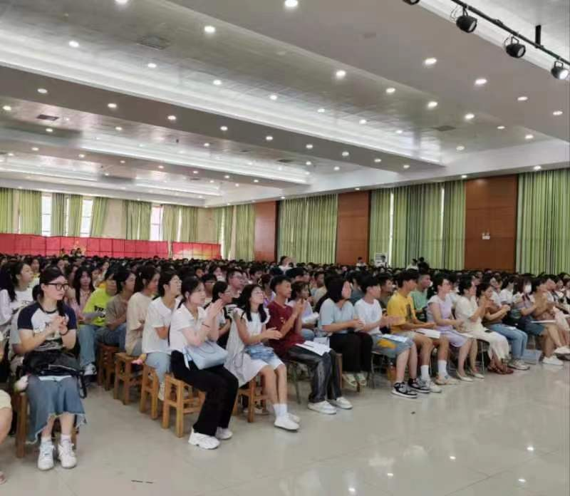 接下来,副经理郭霞向新生介绍了公司教学机构设置、教学管理服务团队及各专业任课教师,党委副书记吴彬向全体新生介绍了员工工作服务团队和全体辅导员老师。全体新生用热烈的掌声回应每一位老师,整个过程气氛热烈,显示出2023级新生的无限热情与期待。