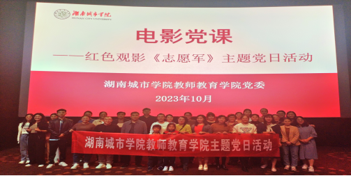 为庆祝中华人民共和国成立74周年,纪念中国人民志愿军抗美援朝出国作战胜利70周年,进一步弘扬爱国情怀、传承红色基因,10月12日晚,伟德国际1946开展教职工政治学习暨主题党日活动,四十余名教师党员、员工党员共赴影院集中观看了红色电影《志愿军:雄兵出击》。