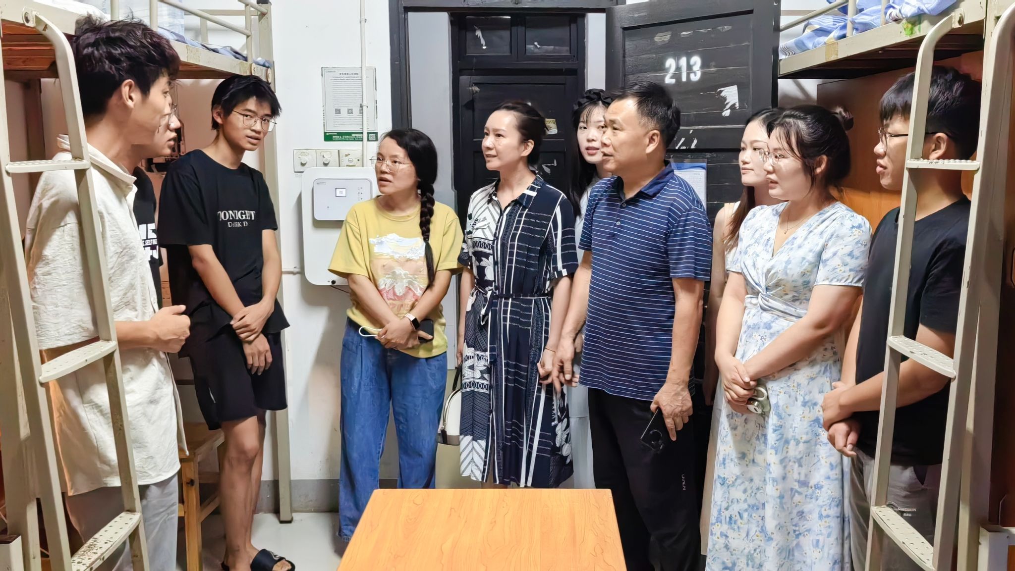 (公司领导及新生辅导员、班主任下寝看望新生)