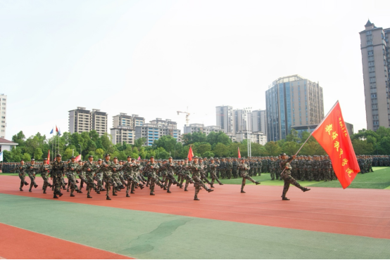 在为期18天的艰苦训练中,教院学子坚持不懈,顽强拼搏,在千万次踏步中锤炼品格,在万千次口令中收获成长。公司新生参与的“庆祝中华人民共和国成立75周年”团体操方阵,用一抹抹红色诉说着祖国的复兴伟业,他们以豪情讴歌历史,怀热忱献礼祖国。分列式检阅中,教院学子身姿挺拔,步伐铿锵有力,口号如雷贯耳,尽显青年之朝气。
