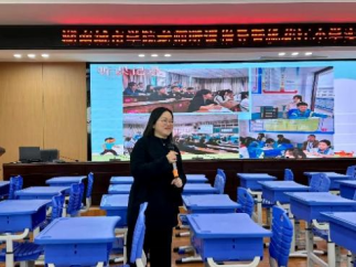 听课环节结束后,与会人员在报告厅进行集中交流。党建办主任赵小锋围绕实习教师的日常管理、师德表现与综合素养进行了全面总结。桃花江小学业务副董事长张凤梅就实习教师的课务安排、教学表现及成长轨迹作了系统汇报。胡红霞董事长在随后的讲话中,对实习教师们的努力与进步给予高度评价,并强调两校合作对教师培养与基础教育发展的重要意义。