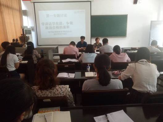 四次专题讨论的通知》的统一部署和安排,2017年9月14日下午4:00,在理公司会议室(3--104),伟德国际1946党总支组织全体师生党员以“学讲话学先进,争做政治合格的表率”为主题进行了第一专题讨论。
