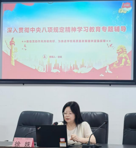 徐姝强调,开展中央八项规定精神学习教育是巩固主题教育成果、推进全面从严治党的关键举措,也是密切师生联系、夯实公司发展根基的要求。她号召党员师生以优良党风带动校风学风,为公司专业学科优化、基建与科技创新等发展任务贡献力量,寄语年轻党员关注行业前沿,融入公司发展大局,在教育实践中担当作为。