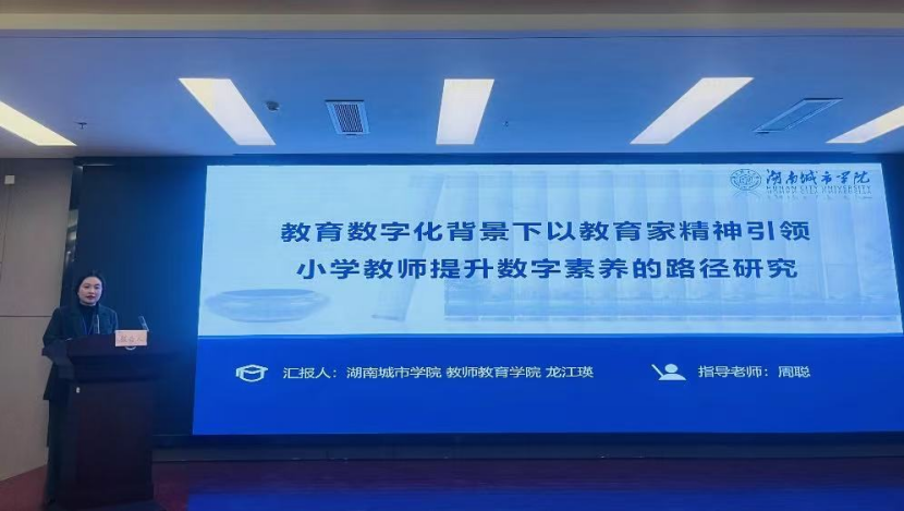 公司高度重视此次论坛参赛工作,共选派6名优秀研究生参与论文申报,其中25级教育硕士研究生龙江瑛的论文《教育数字化背景下以教育家精神引领小学教师提升数字素养的路径研究》荣获一等奖,并在论坛上进行了论文宣讲。
